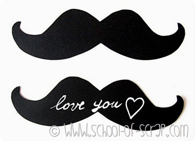 Il pacchetto è già splendido ma non potevo lasciarlo nudo e ho aggiunto una tag a forma di baffoni, su un cartoncino di recupero ho disegnato a mano libera la forma di metà baffi, ho ritagliato e ho usato la sagoma per riportare il disegno (doppio e speculare) sul cartoncino nero.