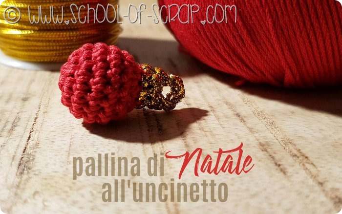 Detto e fatto, mi sono messa al lavoro, ho cominciato subito e ho preparato la prima pallina, tutta rossa con il gancetto dorato per appenderla, ho usato il cotone cablè 5 e l’uncinetto nr. 2,5 per farla rimanere piccolina ma, come sempre, basta cambiare la grossezza del filato e dell’uncinetto per cambiarne le dimensioni senza cambiare la spiegazione di base.